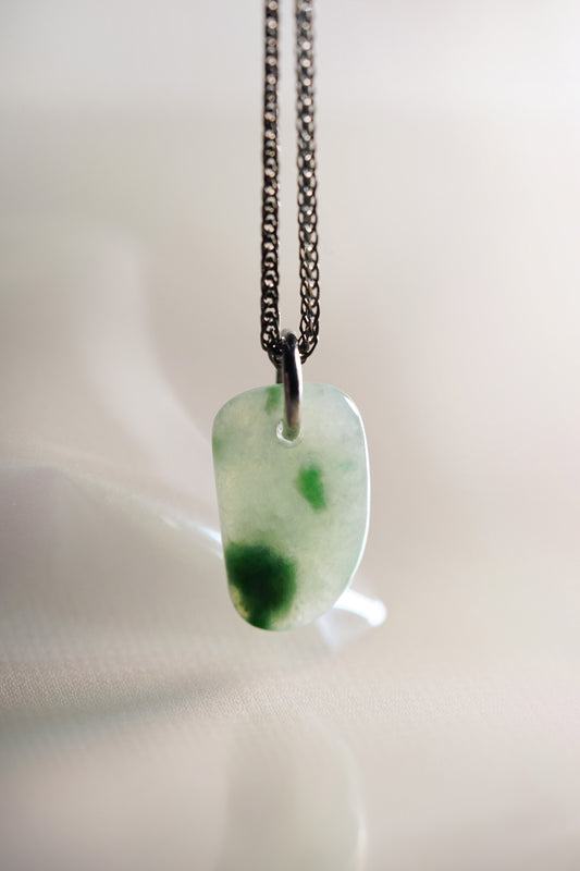 Tag - Green Jadeite & 18K White Gold Pendant - #09