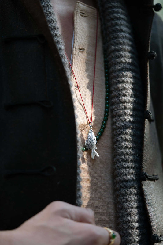 Carved Koi Fish Pendant - Aged Finish - 925 Silver