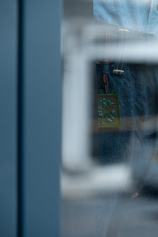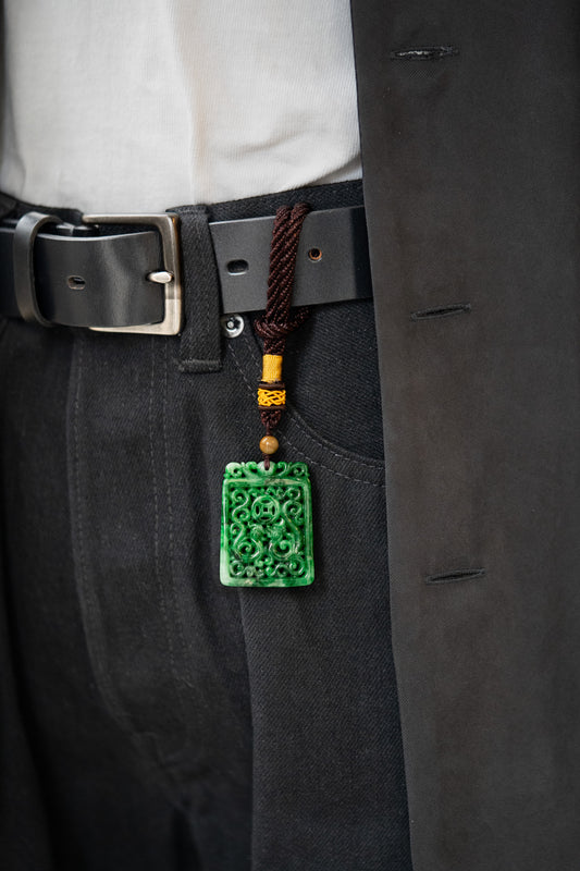 Carved Belt & Bag Pendant - Green Jadeite - #07