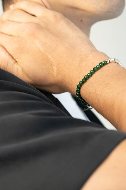 Bead Bracelet - Green Jadeite Beads & 925 Silver Nuggets - #09