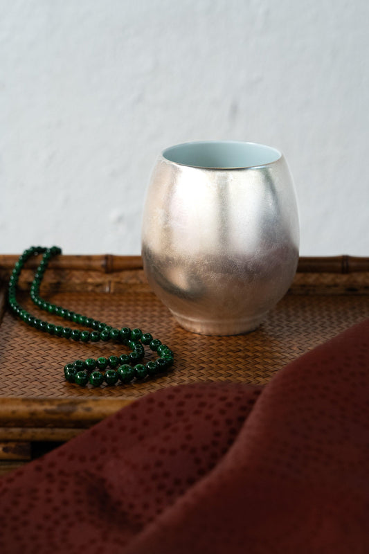 Porcelain Cup - Pure Silver Plated with floral engraving
