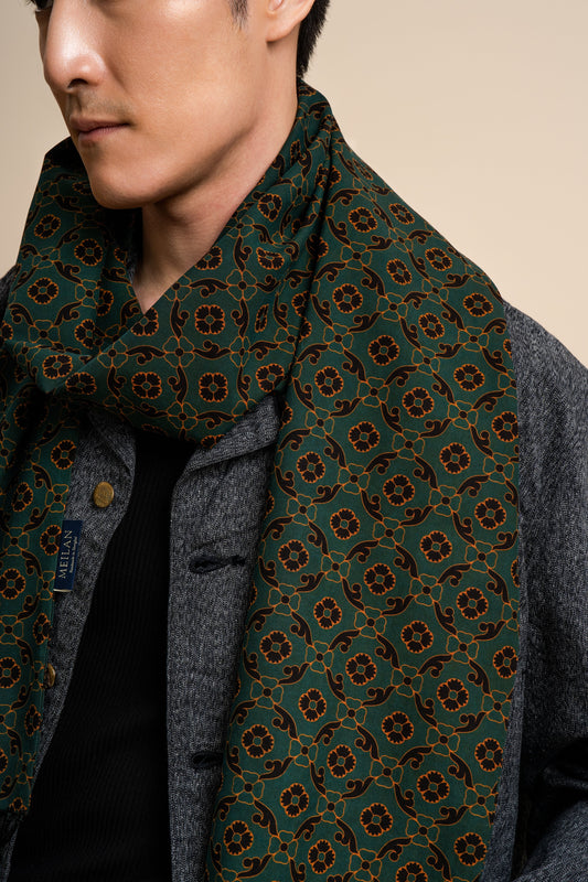 Green Silk Scarf with Phoenix Motif