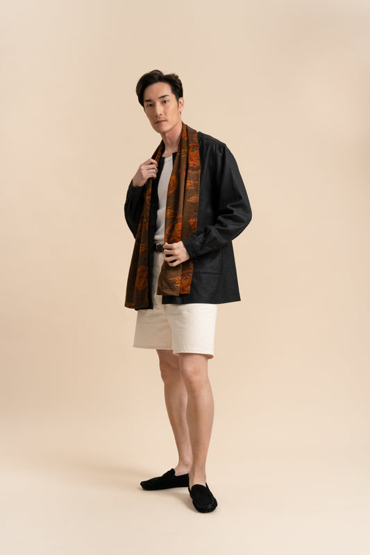 Black Brown Scarf with Dragon and Florals