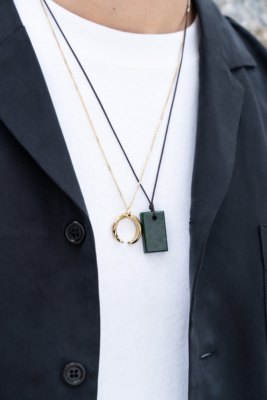 • Carved Bluish Green Jadeite Tag with Platinum Frame hung on a 925 Silver Chain