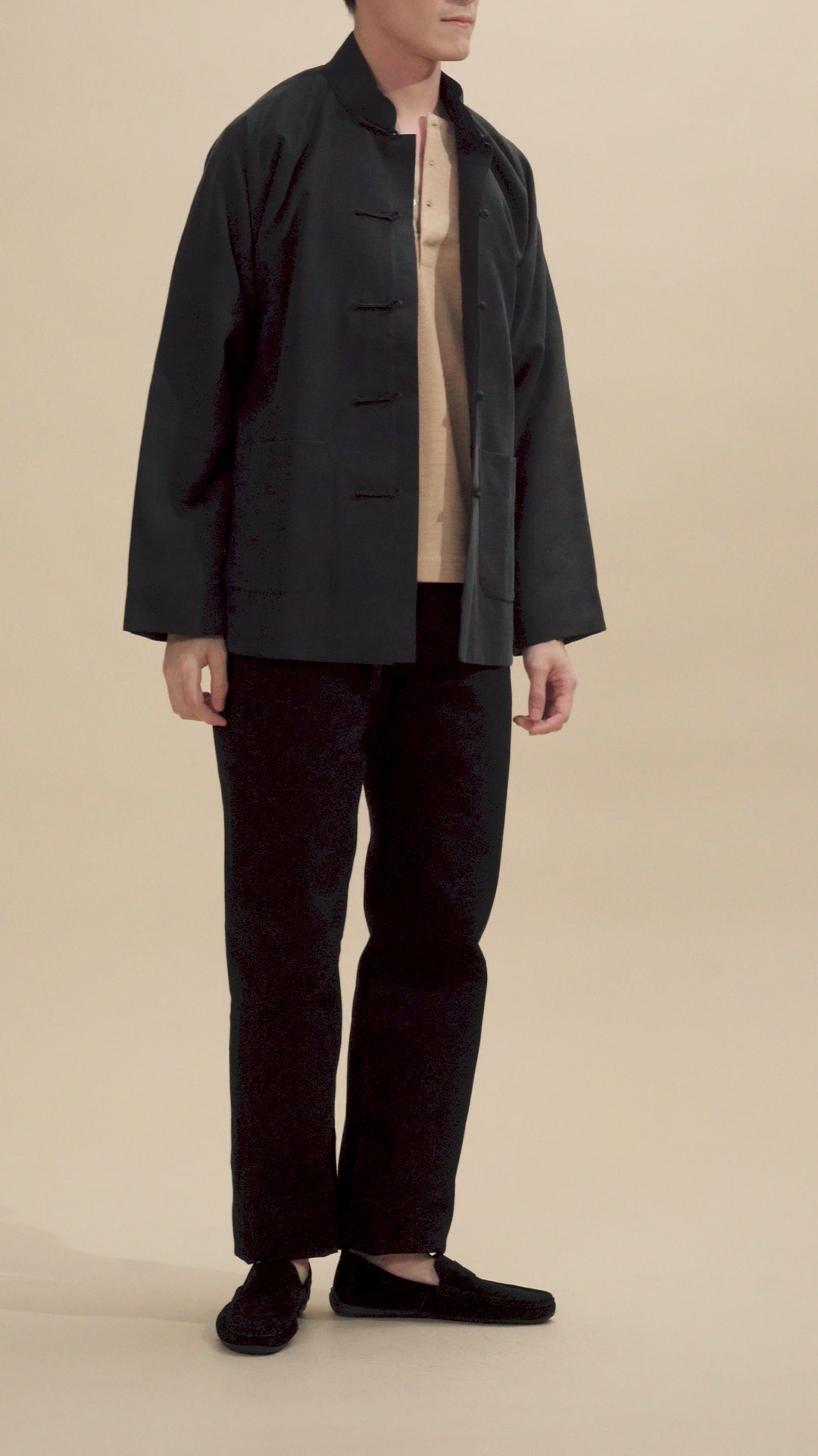 Our black Tang Jacket in pure silk is a piece that seamlessly blends traditional elegance with modern style. Crafted from luxurious 30-Momme silk, this jacket features a classic mandarin collar, hand-sewn frog button closures, and side splits.
